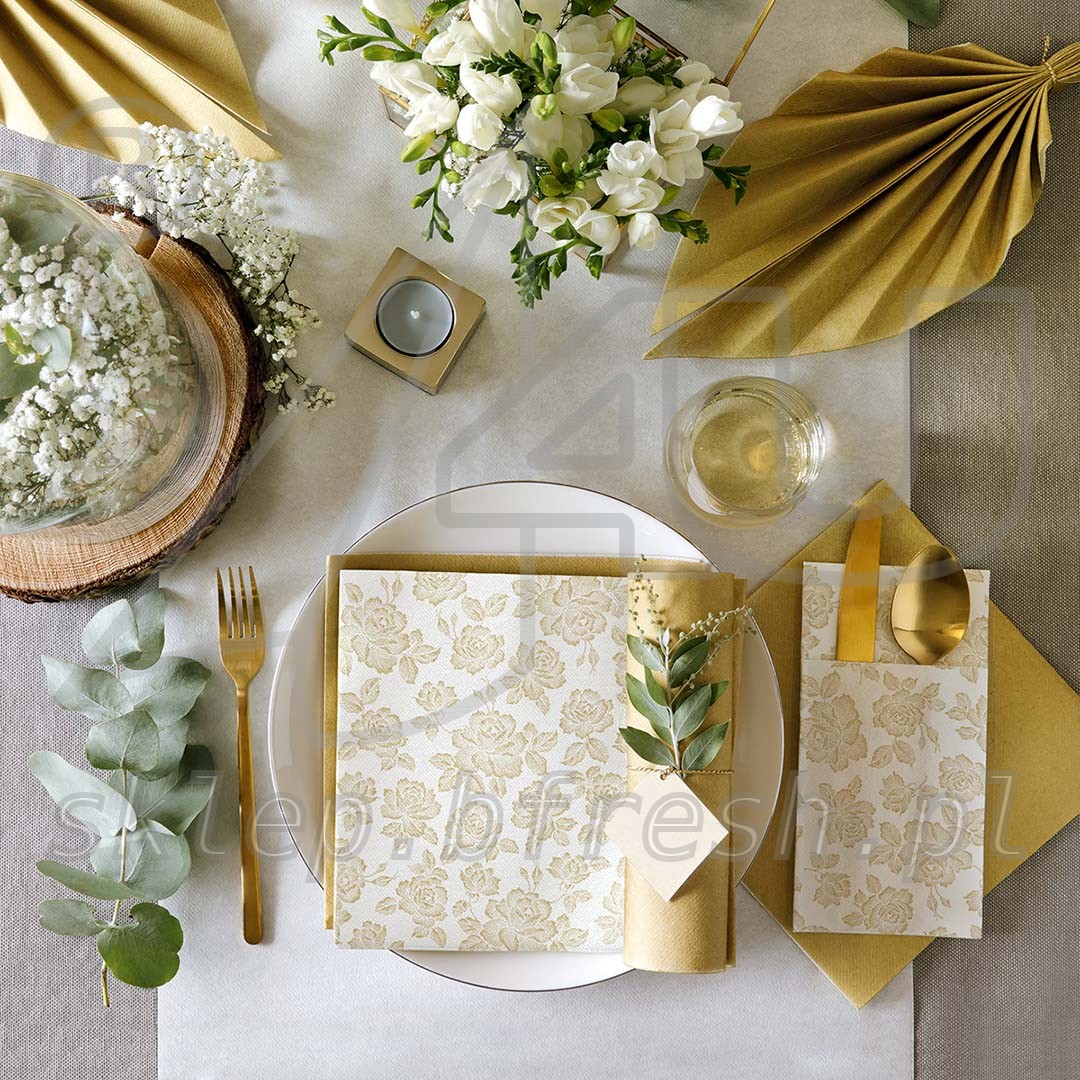 Airlaid cutlery pockets 40 x 40 Subtle Roses Gold 1/8 folded 25 pcs