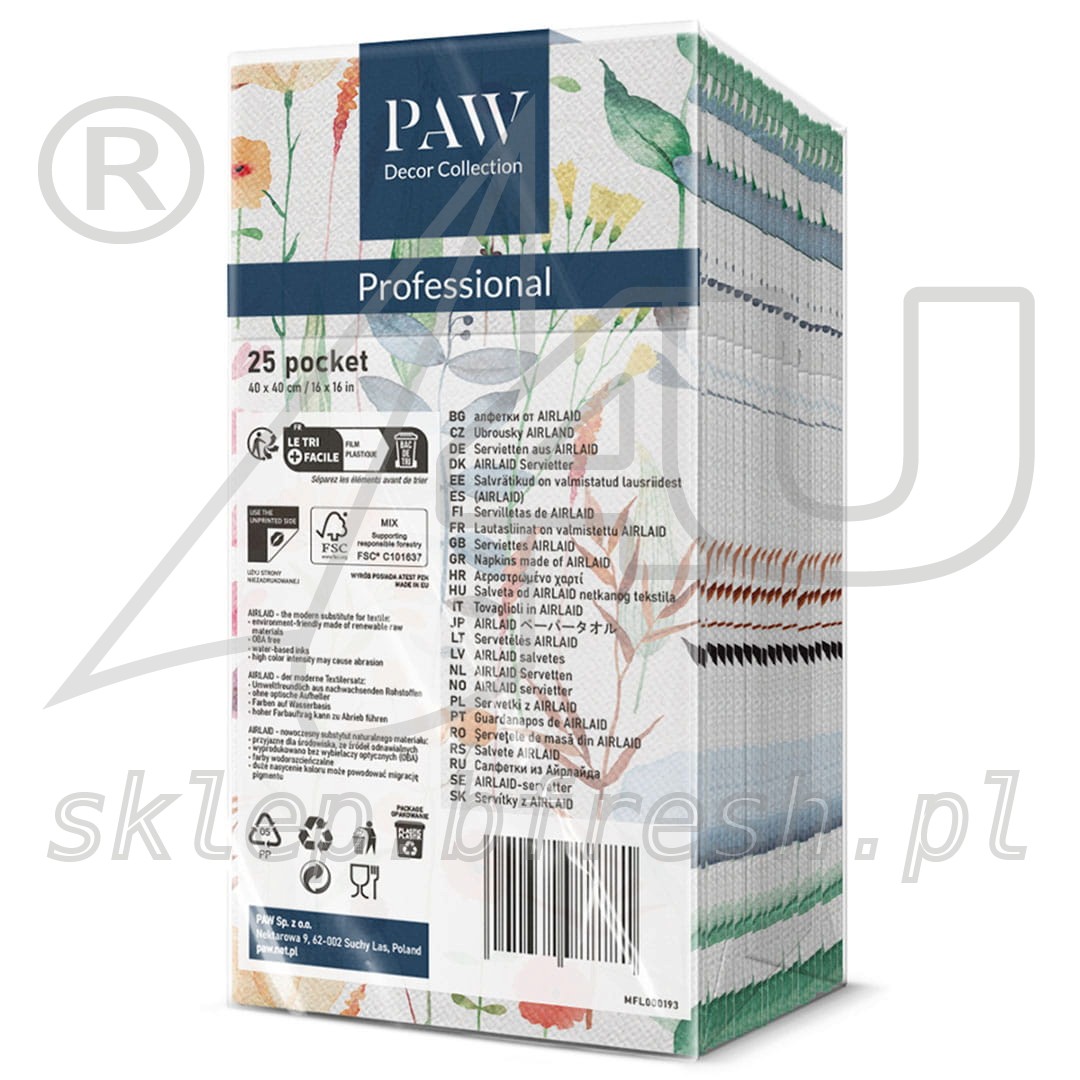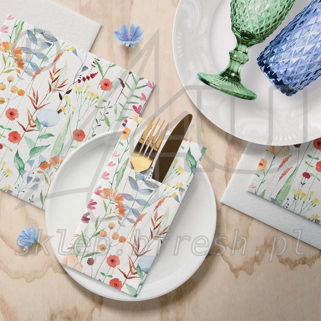 Airlaid cutlery pockets 40 x 40 Watercolor Flowers 1/8 folded 25 pcs