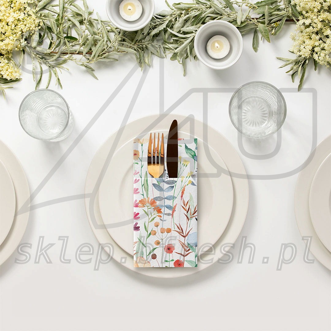 Decor cutlery pockets, made of airlaid paper, are both wonderful table decoration and comfortable way to expose cutlery sets. They can be used alone or in combination with napkins having the same print.