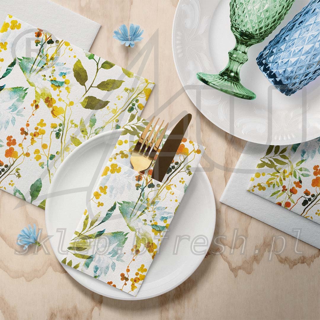 Airlaid cutlery pockets 40 x 40 Watercolor Leaves 1/8 folded 25 pcs