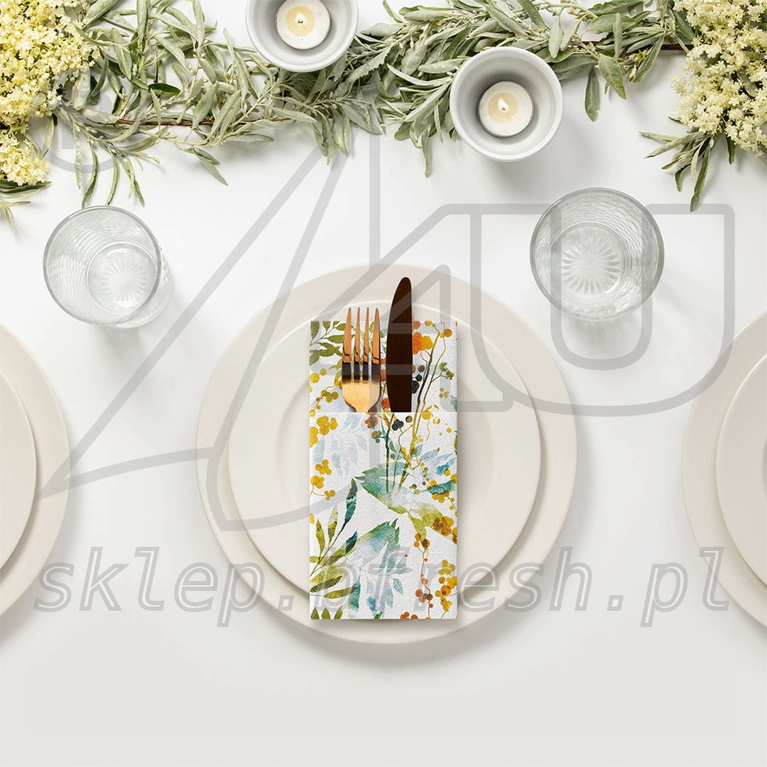 Decor cutlery pockets, made of airlaid paper, are both wonderful table decoration and comfortable way to expose cutlery sets. They can be used alone or in combination with napkins having the same print.