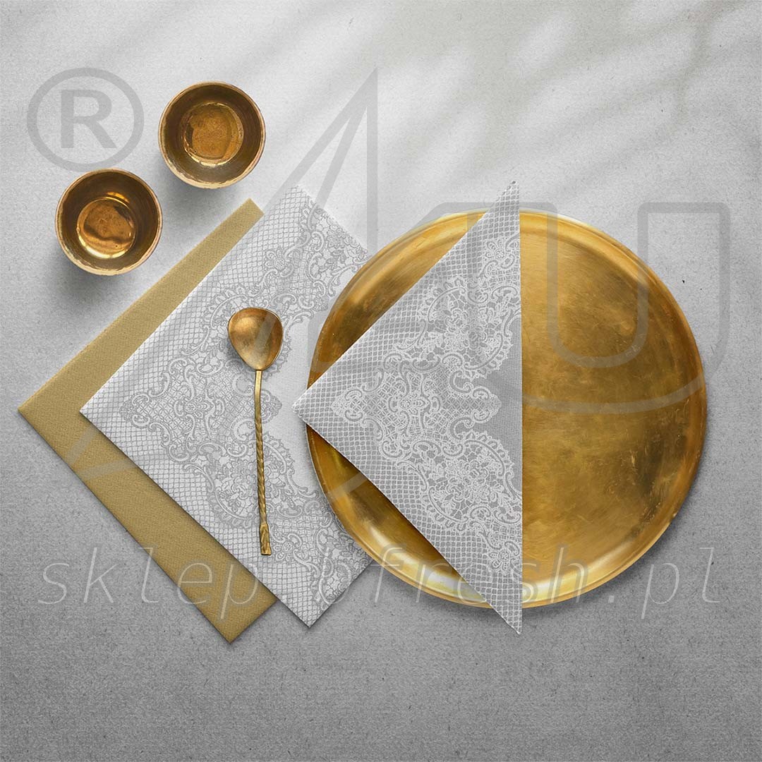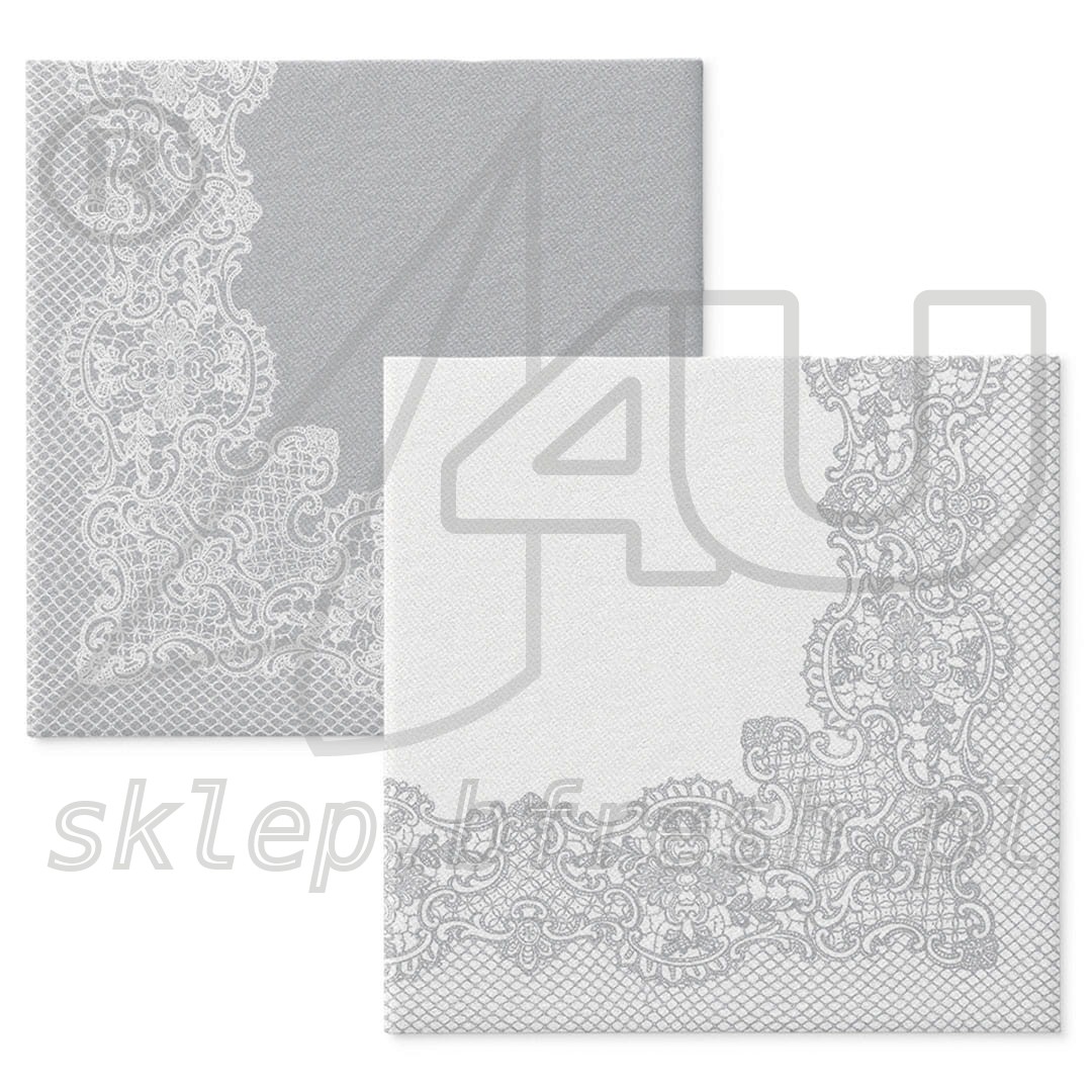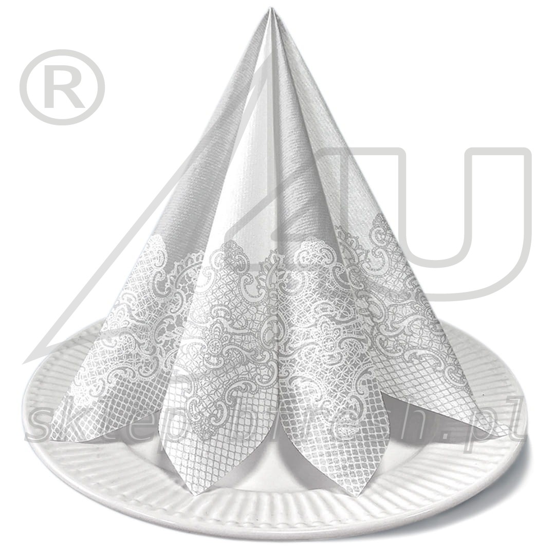 Airlaid napkins 40 x 40 cm Reverse Design Royal Lace Silver - White 50 pcs
