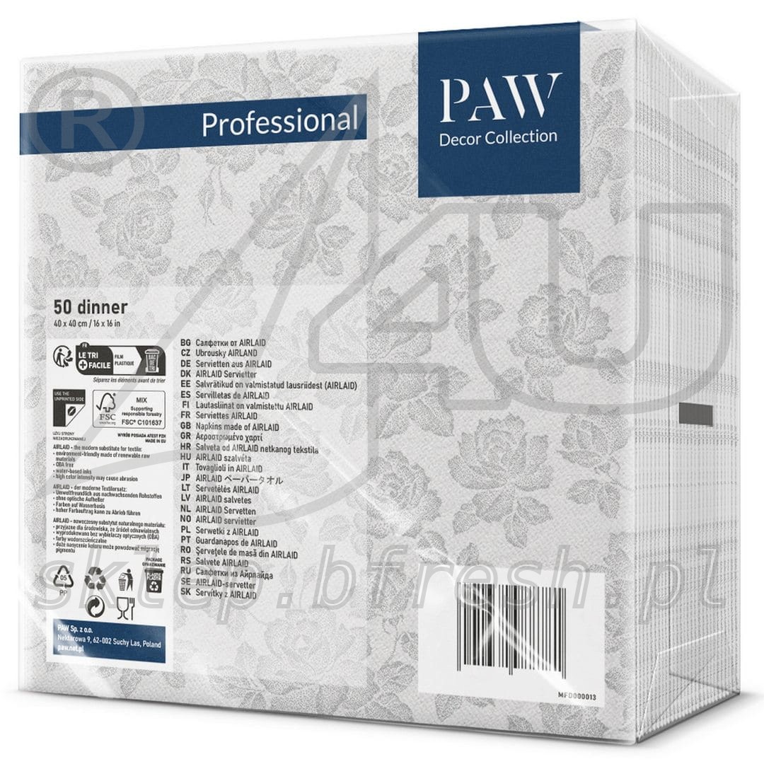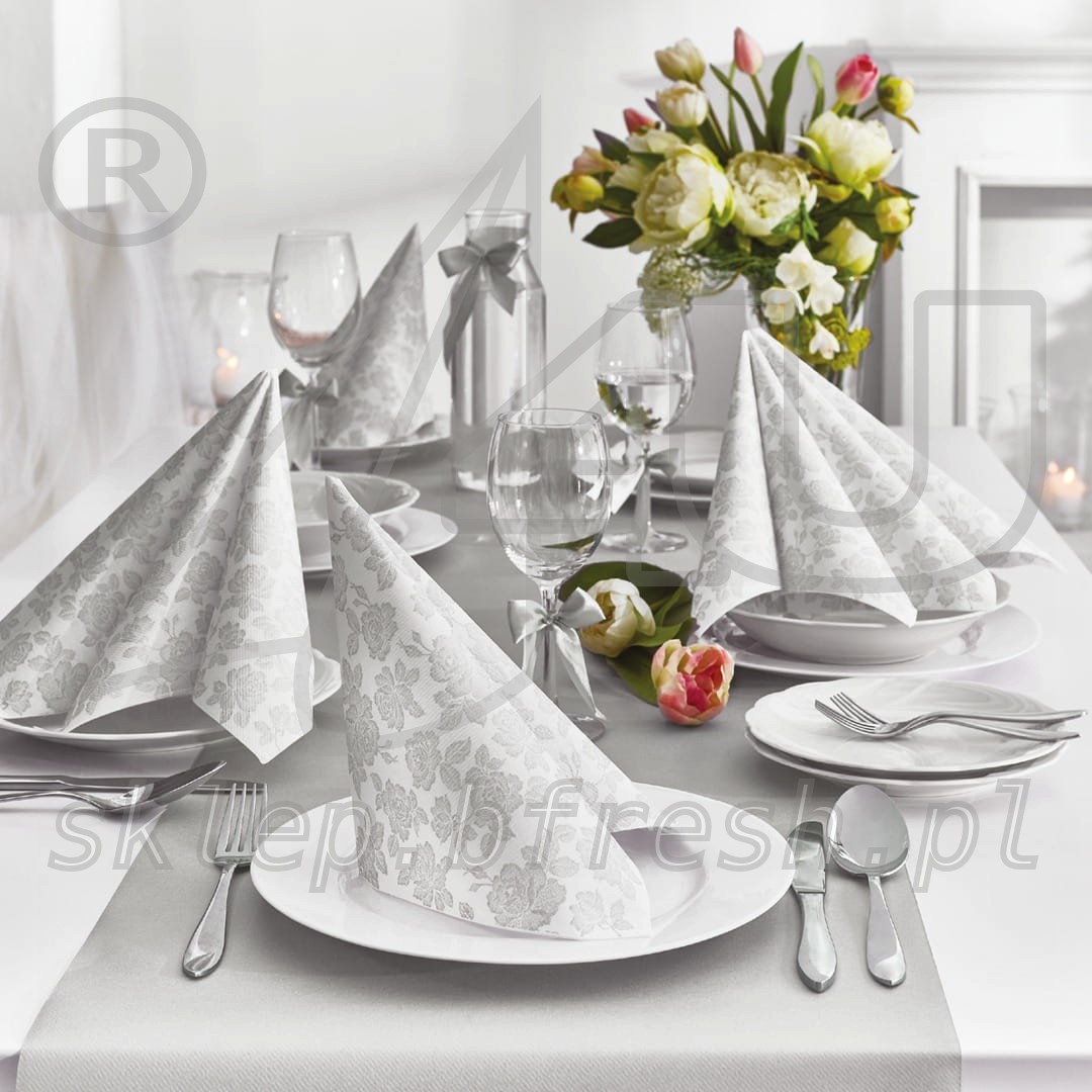 Airlaid napkins 40 x 40 cm Subtle Roses Silver 50 pcs
